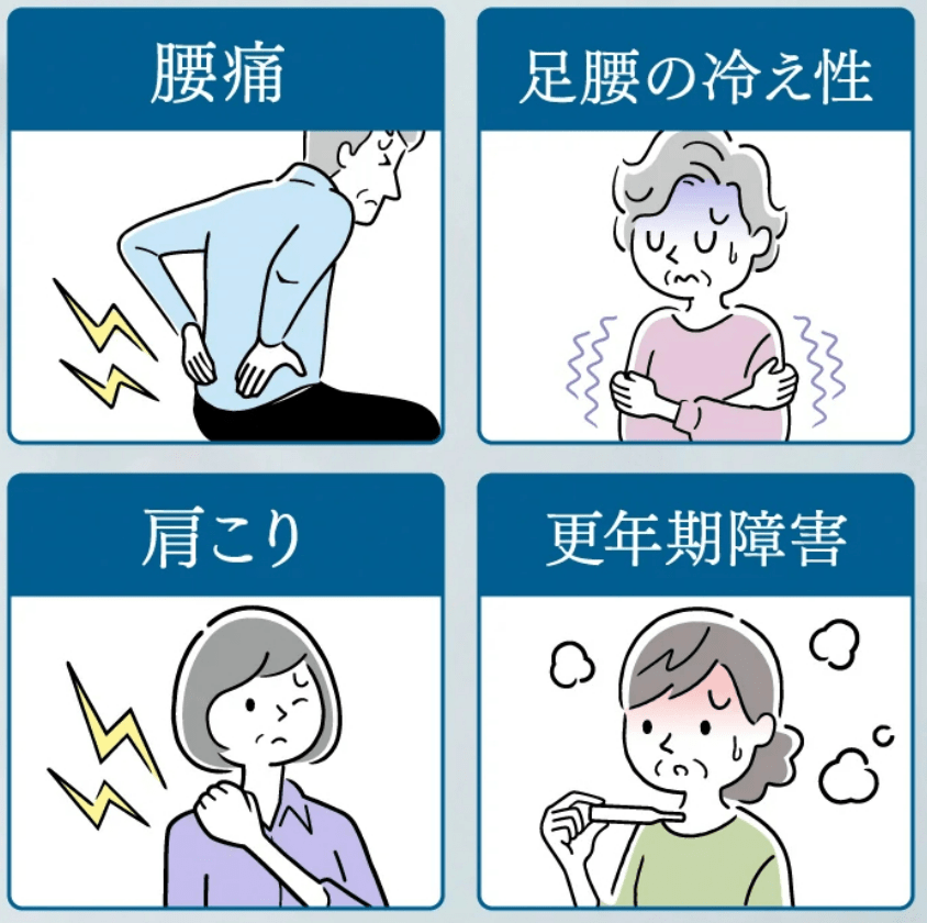 他にも『更年期障害、腰痛、冷え性』など様々な症状の改善が期待できるんです!